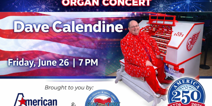 Enjoy an unforgettable evening of music as acclaimed organist Dave Calendine brings his dynamic style and decades of experience to the Ohio Valley Opry Theater. Featuring a lively mix of classic organ favorites and patriotic tunes in honor of America 250, this free, family-friendly concert offers something for all ages. Doors open at 6:00 PM with general admission seating (no tickets required), and donations will be accepted to support Washington County America 250 initiatives.