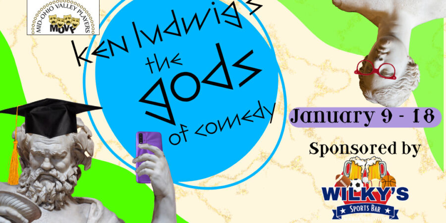 Mid-Ohio Valley Players presents Ken Ludwig’s The Gods of Comedy January 9, 10, 16, and 17 at 7:30 pm and January 18 at 3:00 pm. Tickets are $13 each and are available in advance at midohiovalleyplayers.com or at the box office 2 hours before each show.