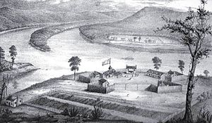 Fort Harmar near Marietta by Joseph Gilman. Note Treaty house for Indian negotiations at bottom left of image.